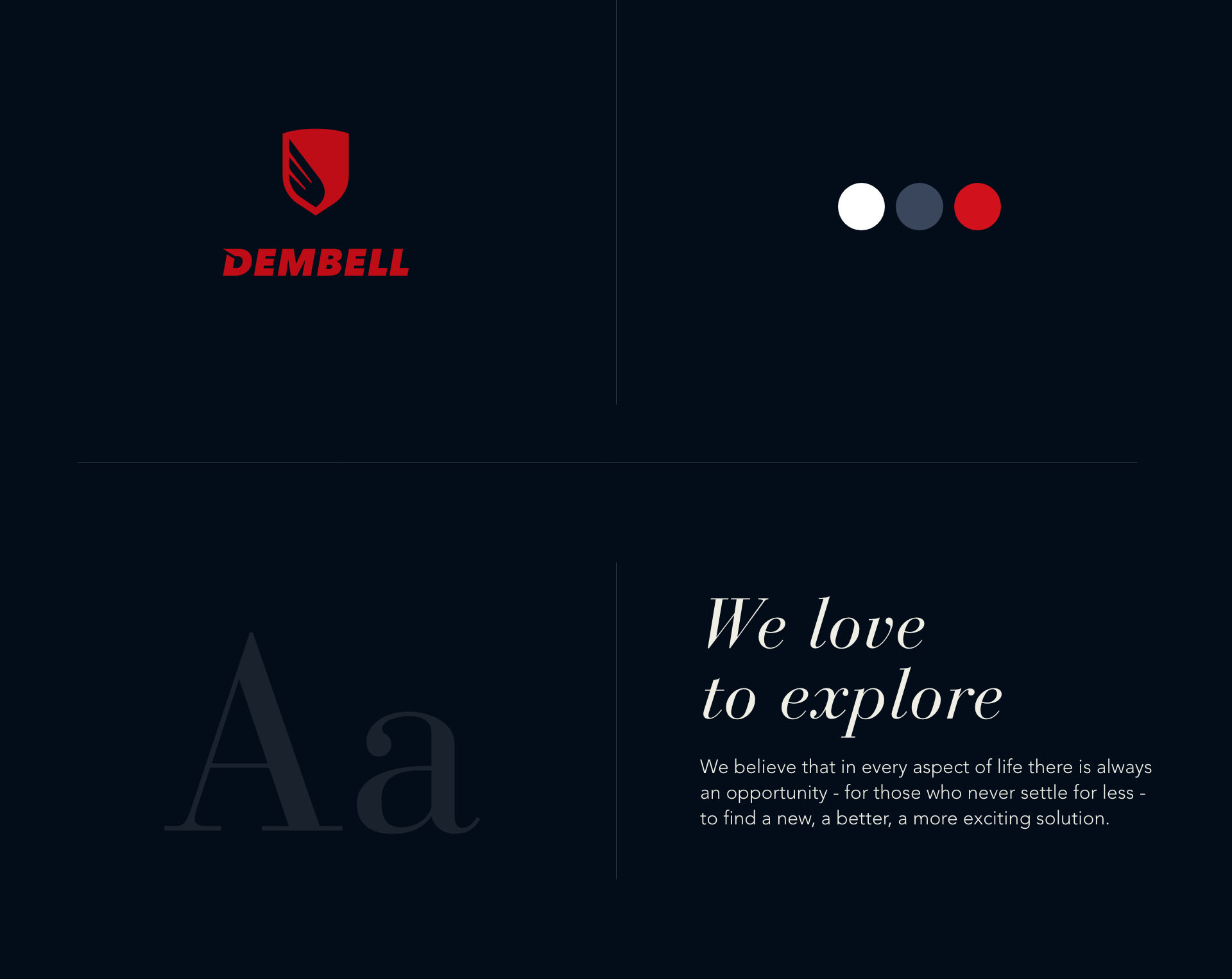 A Dembell tiszteletben tartja a tradícionális értékeket, de folyamatosan az új megoldásokat kutatja. Az arculatot úgy alakítottuk ki, hogy minden részletében ezt a kettősséget közvetítse.